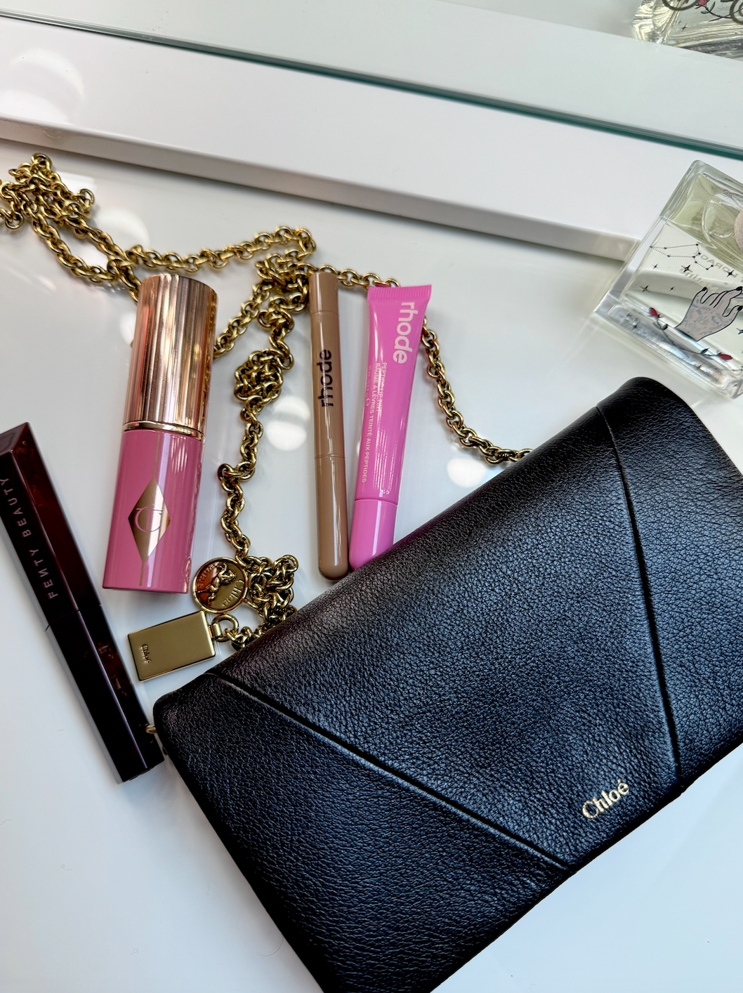 It’s taken me forever to find an evening bag I’m happy with – something that I can use as a clutch, but also has a shoulder strap, something chic that’s just the right size – but big enough for essentials, yet still small enough to stay effortless. Enter the Chloé Spin Flap Wallet on Chain, a beautiful leather piece that finally, finally met my needs. Crafted from beautifully textured grained buffalo leather, it’s a minimalist silhouette with a gold shoulder strap chain, with the iconic Chloé and Horse Medal charms dangling at the end of the chain, just to add that little stand out twist.