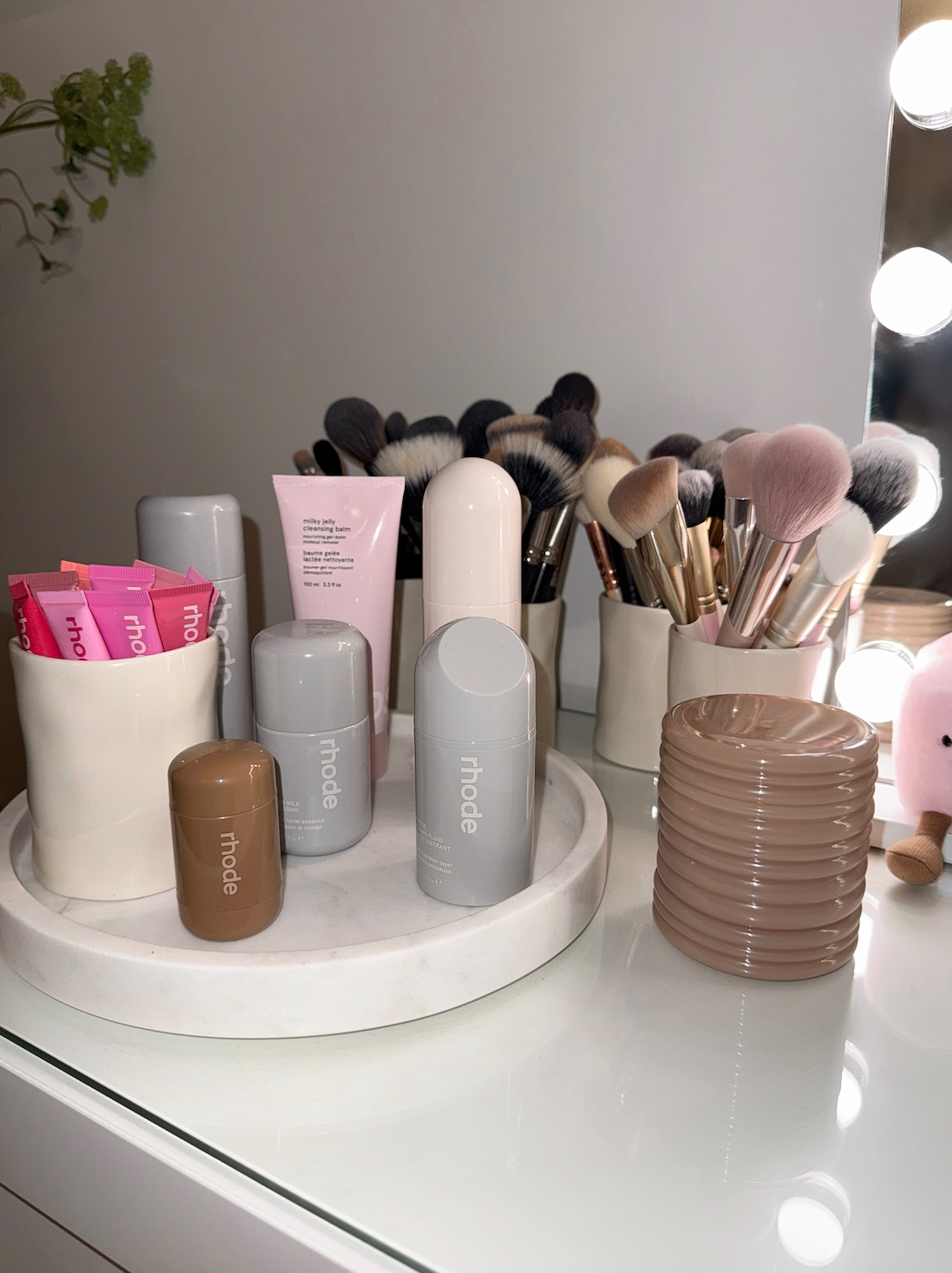 Our bedroom is my favourite room in my house – and I love to surround myself with things that bring me joy – one of these things just so happens to be makeup. I’ve recently updated my dressing table, a bit of a Spring “glow up”m if you will. One of my little pleasures in life is to just sit down in my dressing table chair, and slowly get ready for an evening out, or sit in my dressing gown on a Saturday morning playing with all my new makeup bits I acquired… just as I used to do as a child.